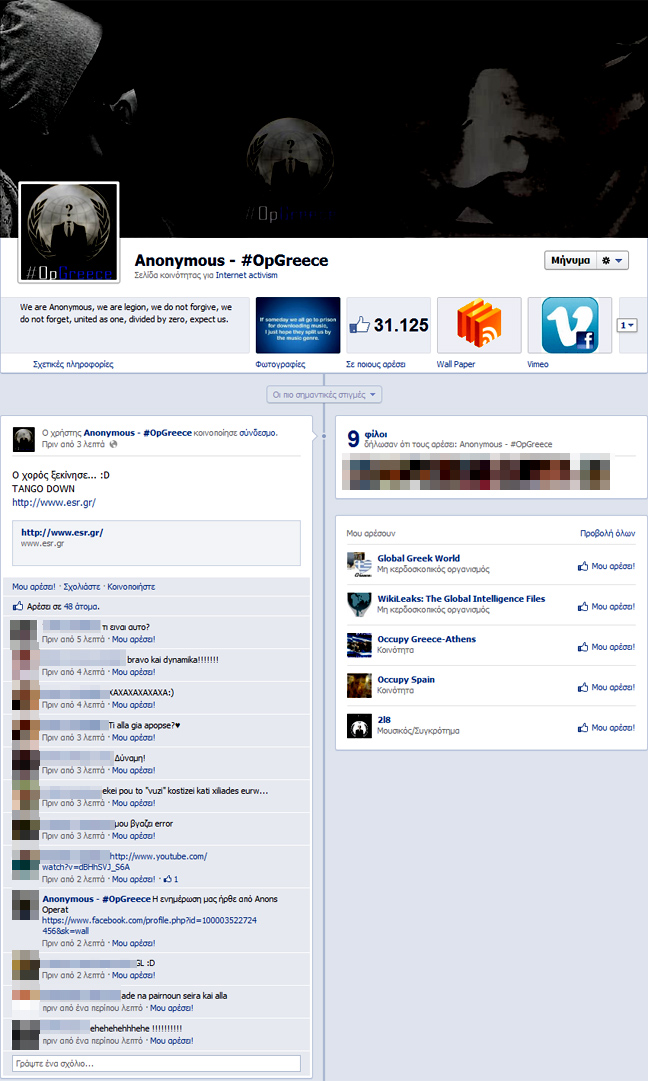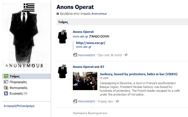 Στην προσωπική τους σελίδα στο Facebook οι Anonymous έστειλαν για ακόμα μια φορά ξεκάθαρο μήνυμα «Ο χορός ξεκίνησε. Tango down».